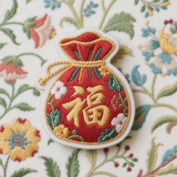 红底金线刺绣,工笔细腻勾勒山水祥云,大字“国庆”浮雕质感,双鸟翩飞,喜庆中式民族风,尽显节日华彩。