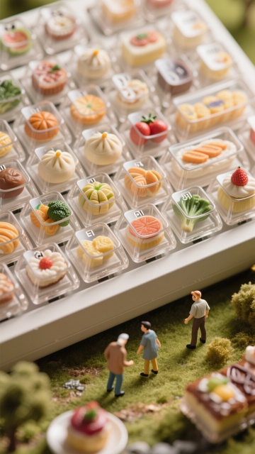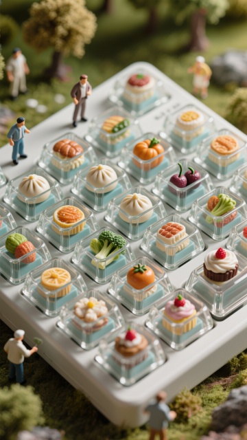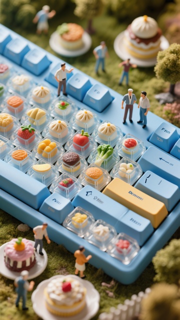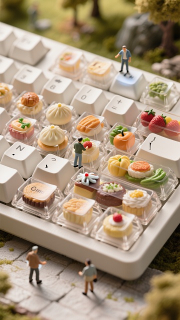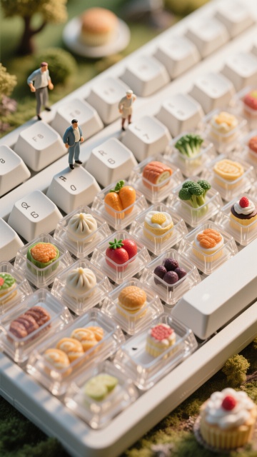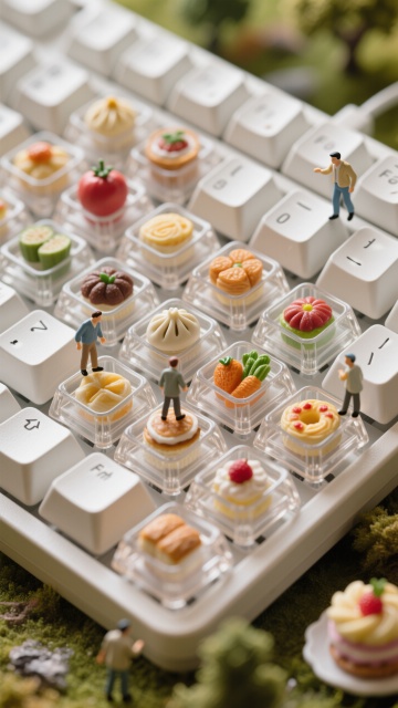 微缩艺术风键盘,3D立体美食摆件,清新趣味,仿佛童话世界。