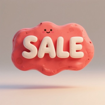 3D充气风“SALE”字样,重拟物质感,红白撞色突出11.11促销主题,节日氛围浓厚。