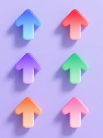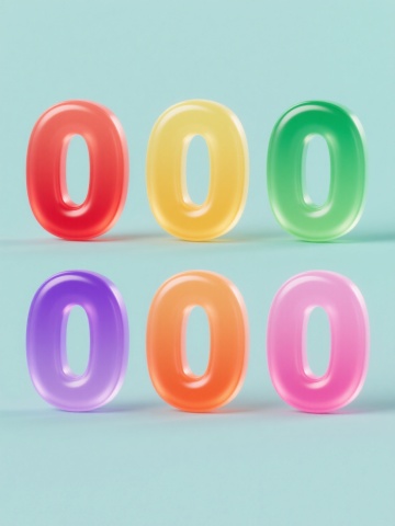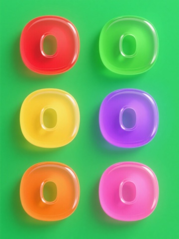 六个完全相同风格的3D透明渐变材质元素,保持0元素类目,每个元素具有不同的整体色彩(如红色、绿色、黄色、紫色、橙色、粉色),元素表面有光滑的高光和细腻的阴影过渡,纯色背景,所有元素规整地排列成一个系列集合,呈现出统一的现代感和立体感设计。