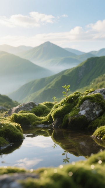 水彩风自然景观,清新实景感,虚拟自然元素融入,展现生机勃勃的山野景象。