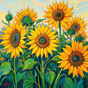 梦幻穆夏风,拟人花精灵,蓝金交织,优雅绽放。