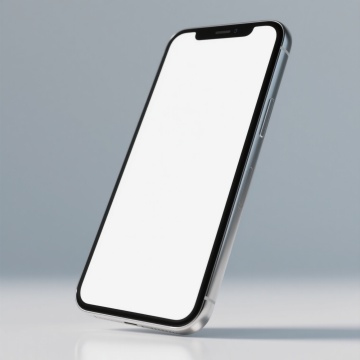 一张智能手机的3D渲染图,采用极简主义设计风格,全白屏幕,黑色边框,银色金属底部,侧面展示,机身呈现轻微的倾斜角度,表面光滑有光泽,具有清晰的阴影和高光效果,整体简洁干净,没有任何多余的装饰和文字信息。