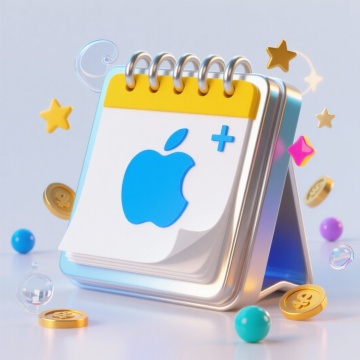 画面中心是一本超大的正方形日历,日历颜色蓝黄色;造型美观大气,符合欧美苹果公司设计风格;纸张是白色;主物体钛金属材质;金属质感风格,透明背景;光感强烈;c4d立体风格;欧美、游戏风格;日历上写着“✓”,画面四周搭配小球、星星、金币等元素。