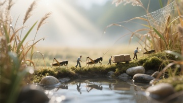 清新卡通风,微缩艺术展现小人清洁巨大番茄,趣味盎然。