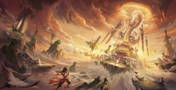 水墨风与国潮元素交融,云海缭绕间仙人御剑飞驰,梦幻朦胧中透出静谧唯美感,插画风格演绎虚拟自然的东方诗意。