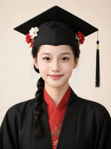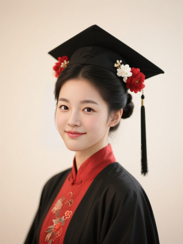 中式感毕业照,古典优雅,国潮风刺绣点缀,花饰增添柔美。
