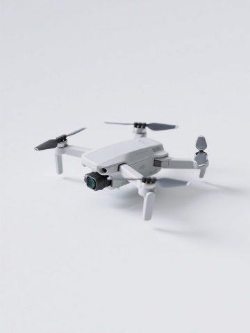 极简主义风格的无人机产品展示图,纯白纯色背景,中央放置单一无人机元素,无人机造型简约现代,四旋翼设计,带有摄像头和起落架,线条流畅,结构清晰,无任何文字、logo或水印,光线均匀柔和,阴影轻微自然,高清晰度,规整的居中构图,保持系列素材的统一性。