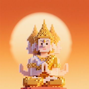 像素风孙悟空,卡通感十足,微缩艺术展现独特创意。