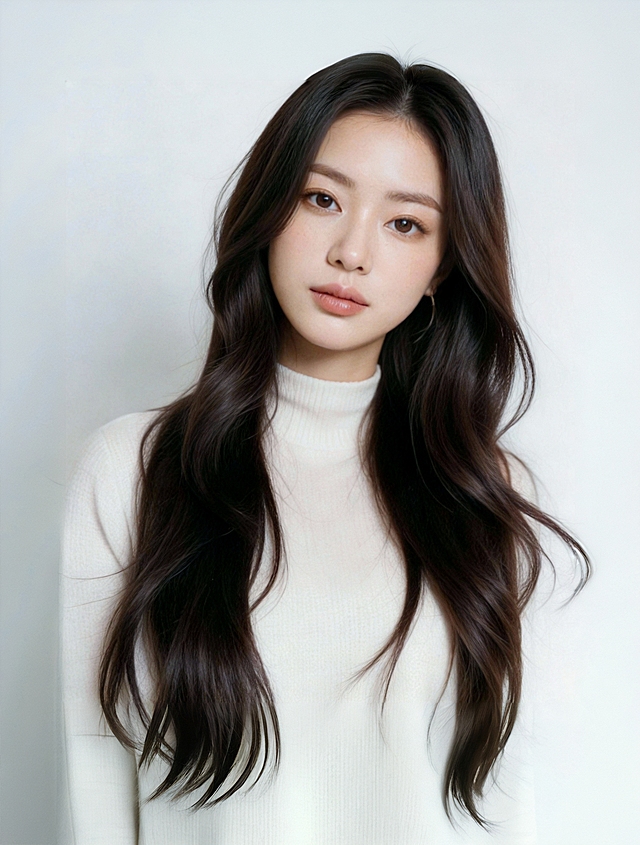 生成了一张女生的正面照片,表情自然微,皮肤状态良好,长卷发详情