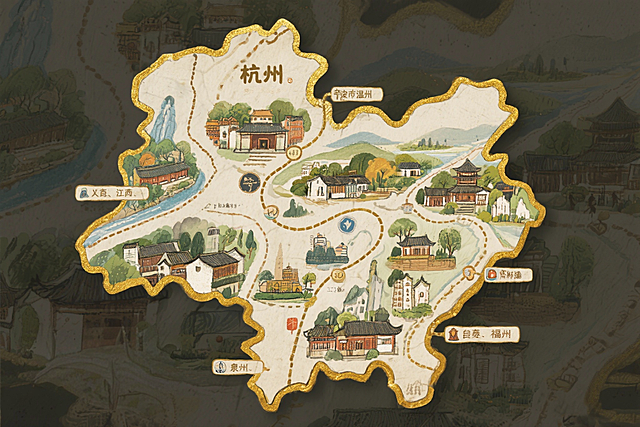 设计一张长1080宽1920像素的杭州风景宣传海报,要求图文并茂详情