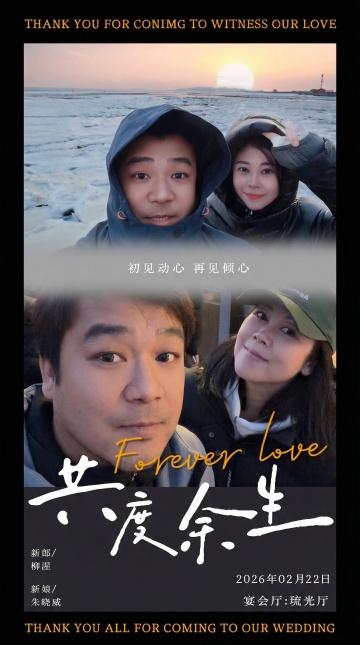 插画风设计,大字突出浪漫誓言,云端恋人营造梦幻甜美氛围。