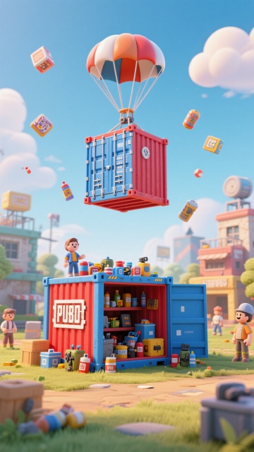 像素风软3D设计,清新卡通感,夏日海滩休闲场景,享受清凉时光。