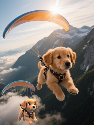 软3D风充气小狗,蓝天白云背景,可爱卡通感十足