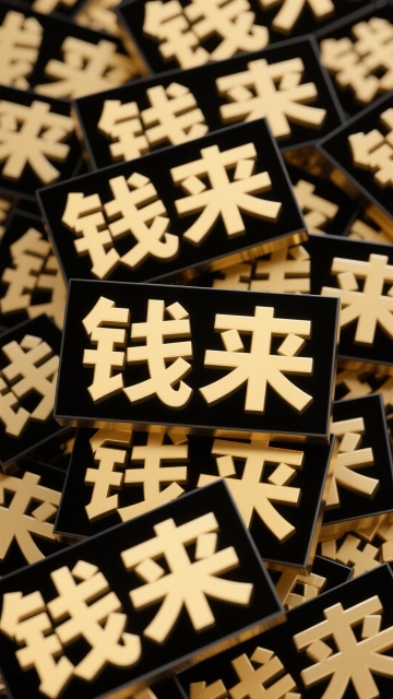 鎏金3D立体“来财”字阵,重拟物金属质感,奢华喜庆,春节贺岁氛围浓厚。