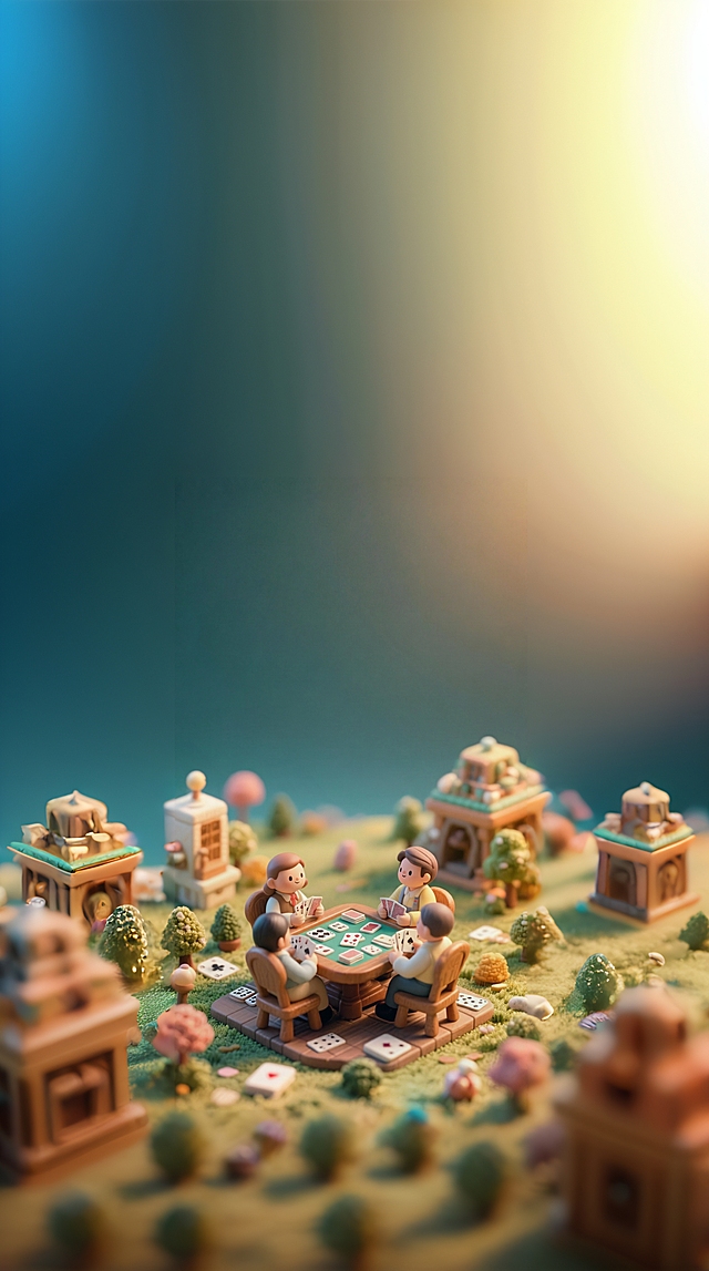 3D卡通风格,清新液态风,虚拟现实场景中乐高人物在山水间打麻将,趣味横生。详情