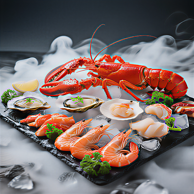 微缩艺术风,3D梦幻场景,人物在三文鱼上漫步,船载鱼子酱,清新超现实。详情
