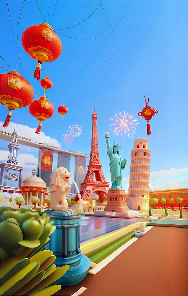 梦幻冬日巴黎,埃菲尔铁塔矗立于毛茸茸的云朵之间,插画风与3D质感交融,雪落如诗,温馨浪漫,充满童话般的趣味与可爱气息。详情