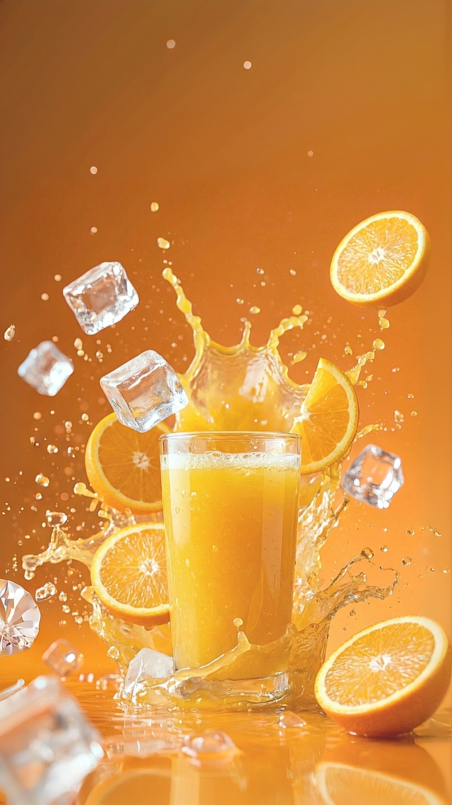 清爽柠檬冰水,简约设计,冰块、薄荷点缀,水花四溅、蓝色背景突显夏日清凉感。详情