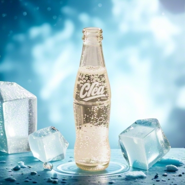 3D轻拟物风设计,透明冰块环绕瓶身,营造清爽清透感,视觉效果现代简约。