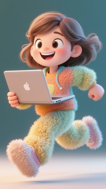可爱3D卡通角色,温暖色调,细腻纹理,童趣十足。