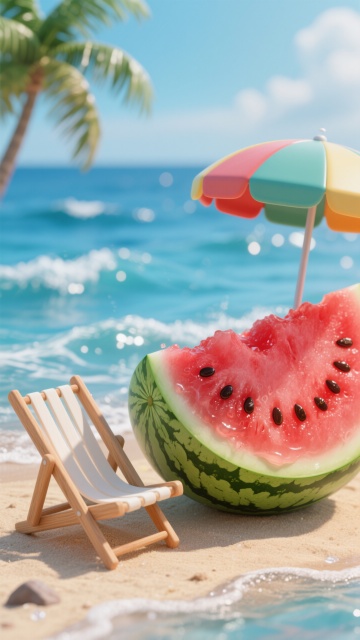 夏日炎炎,西瓜是最爱的水果。在微风吹过的大海边,躺在躺椅上,听着海浪的声音。