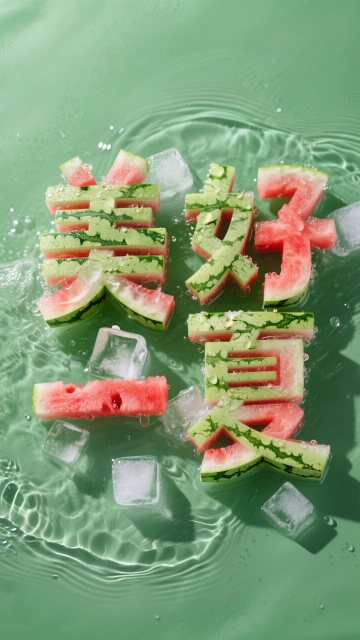 软3D风设计,西瓜与冰块营造清爽感,夏日主题创意十足。