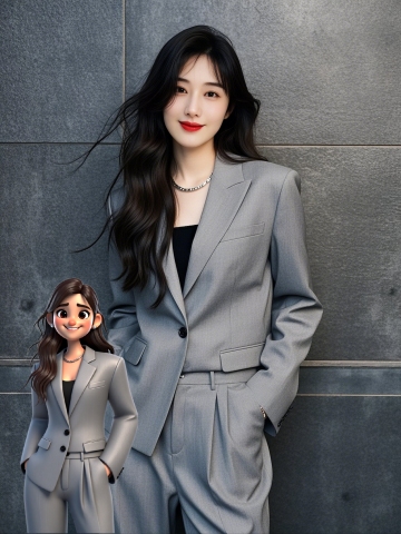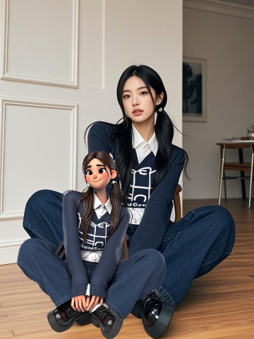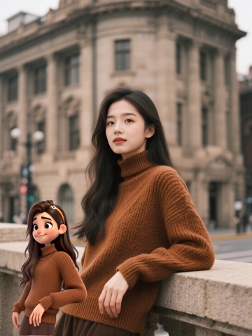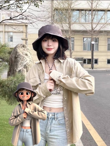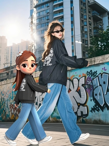 时尚潮流街拍,2D卡通拟人与3D真人混搭,展现独特创意风格。