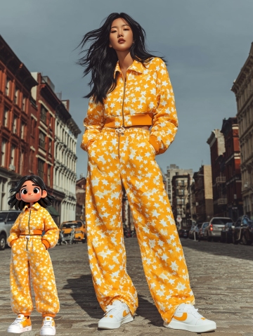 时尚潮流city pop风,拟人卡通角色与真人同框,展现活力与创意。