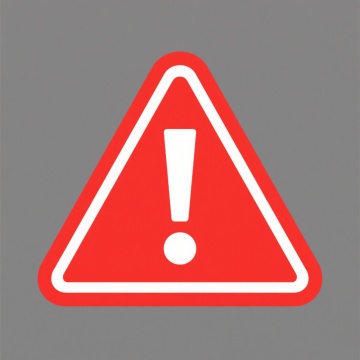 一个红色的等边三角形警告标志,内部中央有一个白色的感叹号,三角形底部中央有一个白色的圆点,整体设计简洁、平面化,具有强烈的视觉警示效果,色彩对比鲜明,风格为极简的图标式设计,传达禁止或警告的主题。