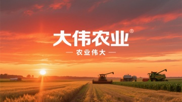 夕阳下的广阔田野,大字风设计突显“大伟农业”,实景感强,展现丰收的宽阔景象。