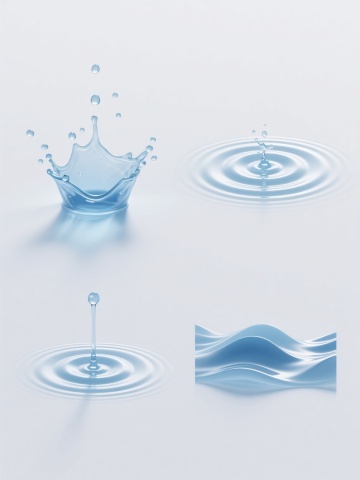 一套6个浪花元素设计,保持统一的卡通插画风格,使用纯色背景,每个浪花形态完全不同。1. 第一个浪花:明亮的蓝色渐变,带有白色泡沫细节,呈现出向上翻涌的动态造型,边缘圆润光滑,像卡通化的海浪,带有水滴飞溅效果。2. 第二个浪花:采用深蓝色和白色对比,设计成环形漩涡状,中心有一个小气泡,浪花边缘有尖锐的三角形海浪尖,整体造型紧凑有张力。3. 第三个浪花:浅蓝色调,呈现出柔和的波浪曲线,像一个微笑的弧线,顶部有蓬松的泡沫云,底部有细小的波纹,造型可爱温柔。4. 第四个浪花:深蓝色为主,带有白色条纹状泡沫,设计成多层堆叠的波浪,每层波浪大小不一,错落有致,有强烈的层次感。5. 第五个浪花:蓝白渐变,造型像一个向前推进的海浪,前端有一个突出的波峰,波峰上有一个小海豚剪影,增加趣味性,整体动感十足。6. 第六个浪花:采用蓝、白、浅蓝三色,设计成不规则的浪花形状,像多个小浪花汇聚在一起,有的向上,有的向下,有的向左,有的向右,呈现出活泼跳跃的姿态,充满活力。所有浪花都保持简洁的线条,鲜明的色彩对比,符合卡通插画的设计感,每个都有独特的形态和细节,适合作为图标或装饰元素使用。