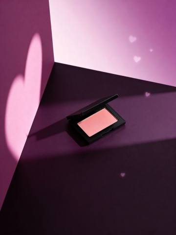 梦幻紫调光影中,3D轻拟物风腮红盒绽放甜蜜浪漫,玻璃质感心形光斑点缀,柔美氛围尽显情人节专属情愫。