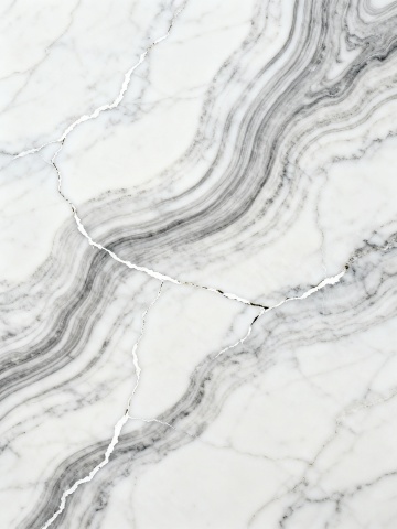 一个表面光滑、形态圆润的碗状大理石雕塑,置于白色平面上,光线从左上方柔和照射,在碗的右下方形成浅淡阴影,整体呈现极简主义的3D写实风格,大理石纹理细腻流畅,色彩改为深邃的墨黑色底色中交织着银灰色的飘逸纹路,保留原有的纹理走向和光泽感,营造出沉稳而优雅的氛围。
