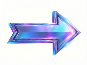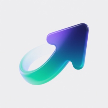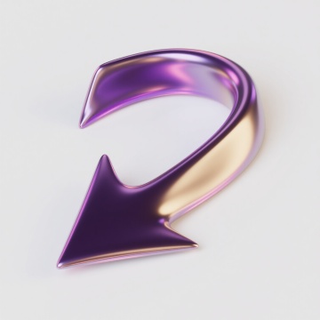 极简特写构图,一个具有液态金属质感的3D立体向上箭头图标悬浮于纯白色背景中央,主体呈现从深海蓝到紫罗兰的渐变效果,箭头顶部和边缘有钻石切割般的锐利高光,底部和内侧有如同被月光照亮的柔和阴影,整体造型融合未来主义与有机曲线,线条如丝绸般流畅,箭头表面呈现细微的波纹肌理,在纯白背景衬托下形成强烈的视觉张力与超现实立体感。