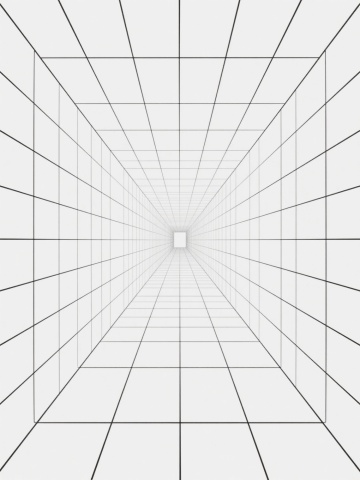 暖金色调的精密透视网格,由渐变铜色直线构成的无限延伸的十二面体空间,线条从前景的粗实逐渐过渡到消失点的纤细,形成强烈的单点透视效果,所有金色线条向画面中心的琥珀色光源汇聚,背景是温暖的米白色渐变,网格结构在光源处产生微妙的光晕扩散,整体营造出理性与温暖并存的几何空间韵律感。