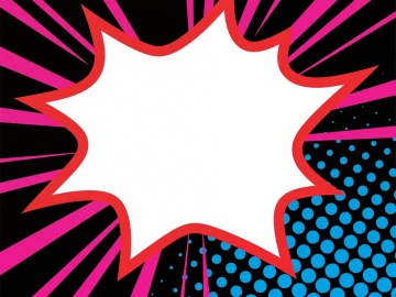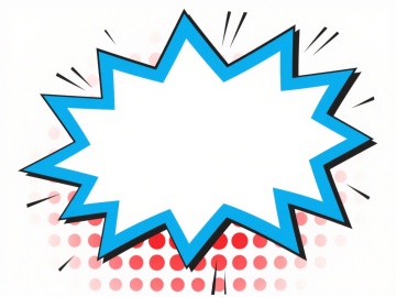 高对比度波普风格对话框,纯白背景中央是不规则星形空白区域,边缘由亮红色粗曲线勾勒轮廓,轮廓内侧分布着尖锐的荧光粉放射状线条装饰,底部右侧和下方点缀着大小不一的宝蓝色圆点构成的半色调图案,圆点密度从内向外形成渐变韵律,整体呈现出强烈的复古漫画视觉效果和动态张力,线条简洁有力,图案分布均衡,具有鲜明的波普艺术特征和叙事性引导作用。