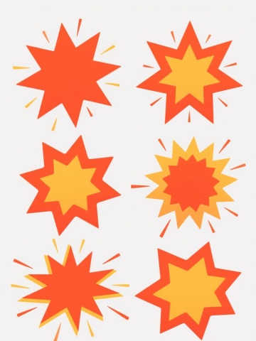一个充满促销氛围的爆炸形图形设计,采用鲜明的红黄橙渐变配色,具有强烈的视觉冲击力,边缘呈不规则的星形尖角状,内部色彩从中心向外由深橙逐渐过渡到明亮的黄色,边缘点缀着细小的橙色放射状线条,整体风格活泼醒目,适合用于促销活动的视觉元素。