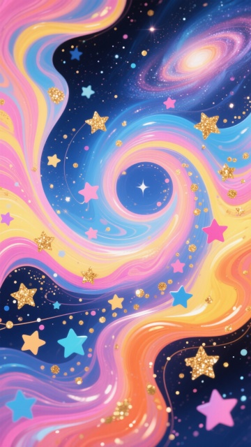 深邃迷幻的星河背景,以深邃的紫色和镭射粉为主色调,融合流动的霓虹蓝与荧光紫渐变,大量细碎闪烁的金色、银色和彩色星尘散布其间,中心区域有一团梦幻的星云呈现出烟雾状的柔和质感,边缘呈现朦胧的光晕效果,整体画面营造出神秘而迷幻的宇宙氛围,具有数字艺术的平滑过渡质感和细腻的光影层次,色调浓郁且富有视觉冲击力,充满未来感和奇幻色彩。