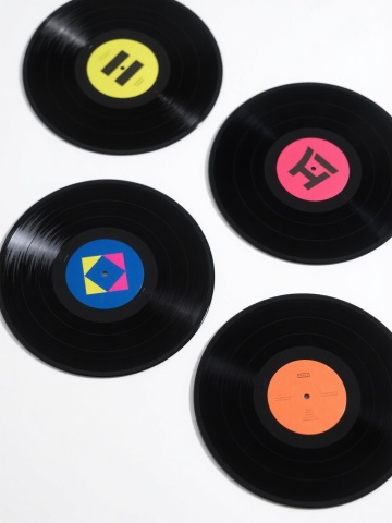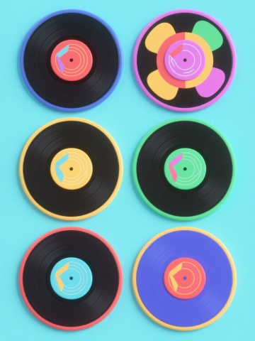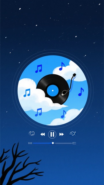极简风格音乐主题插画,黑胶唱片居中,唱片中心为蓝色同心圆,唱臂位于右侧,唱片周围环绕多层不规则黑色曲线,曲线内外散布多个黑色音乐音符,白色背景,线条简洁流畅,平面设计风格,高对比度,无渐变,无阴影,纯粹几何与线条构成,整体视觉平衡,现代简约设计感。
