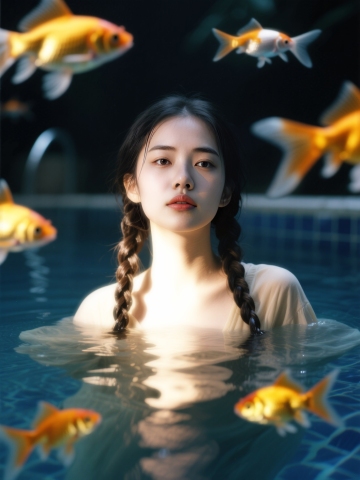 梦幻液态风,清透光影中,少女轻盈浮游,唯美感与浪漫感交织。