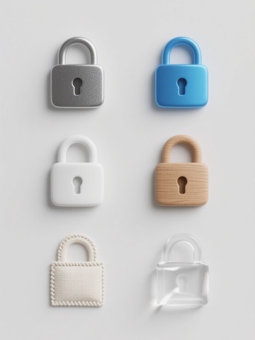 极简风格的系列素材集合,规整排布六个完全相同造型的文件夹与夹子组合图标,每个图标拥有不同的材质表现:1. 磨砂塑料质感,淡粉色主体搭配同色系夹子,细腻哑光表面;2. 金属镀铬质感,银白色反光夹子与浅灰文件夹,强烈高光与镜面反射;3. 木质纹理质感,浅棕色文件夹与深棕色夹子,清晰的木纹肌理与自然结疤;4. 透明玻璃质感,半透明文件夹与夹子,折射光影效果与轻微磨砂边缘;5. 柔软布料质感,浅粉色针织面料文件夹,搭配同色系线绳编织夹子;6. 光滑陶瓷质感,哑光粉色陶瓷文件夹与亮面陶瓷夹子,温润细腻的釉面光泽。所有元素均采用纯色背景,保持简约扁平的视觉风格,统一的柔和光影处理,每个材质图标之间保持等距排列,整体呈现整齐划一的系列感。