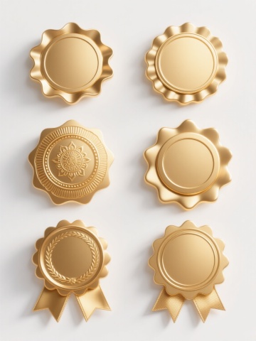 白色背景上排列整齐的6个不同样式、不同材质、不同元素的积分图标,采用精致的3D立体设计风格,每个积分图标都具有光滑圆润的边缘和细腻的渐变色彩,主色调为明亮的金黄色系,带有柔和的高光和自然的阴影效果,呈现出类似金属与塑料结合的质感,部分积分图标可融入皇冠、星星、齿轮、宝石、盾牌、奖杯等不同元素,整体构图均衡对称,视觉层次清晰,每个积分图标独立且辨识度高,保持统一的光影逻辑和设计语言,营造出精致、高端、富有价值感的视觉效果。