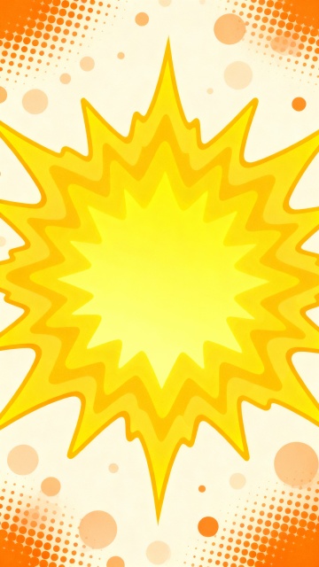 一个充满促销氛围的爆炸形图形设计,采用鲜明的红黄橙渐变配色,具有强烈的视觉冲击力,边缘呈不规则的星形尖角状,内部色彩从中心向外由深橙逐渐过渡到明亮的黄色,边缘点缀着细小的橙色放射状线条,整体风格活泼醒目,适合用于促销活动的视觉元素。