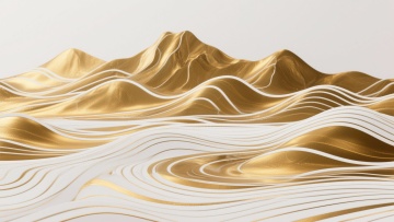 金白配色的抽象线条纹理背景,金色为主色调,白色作为点缀和高光,整体呈现出山川湖海的意境。画面中充满了流畅而富有动感的抽象线条,模拟了山脉的起伏、河流的蜿蜒和海浪的波动。线条的粗细和疏密变化丰富,形成了自然的层次感和节奏感。金色部分带有细腻的纹理,仿佛阳光照耀下的金属表面,闪烁着微弱的光泽,而白色线条则如同浪花、云雾或山顶的积雪,与金色形成鲜明对比,增添了画面的灵动和纯净感。整体风格现代简约,具有强烈的视觉冲击力和艺术美感,适合作为高端海报、封面或装饰背景使用。