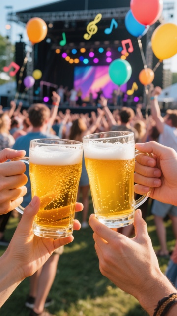 温暖的夏日傍晚,一群人手握装满金黄色啤酒的玻璃杯,杯中啤酒泡沫细腻丰富,杯壁上凝结着晶莹的水珠,众人高举酒杯相互碰撞,庆祝的瞬间充满欢乐与活力。背景中悬挂着密密麻麻的暖黄色串灯,灯光朦胧柔和,营造出温馨浪漫的氛围,周围树木的枝叶在微风中轻轻摇曳,光影斑驳交错,整体画面色彩变换为以深蓝、紫色和粉色为主的梦幻色调,保留原有的聚会欢庆场景和所有元素细节,光影效果依旧柔和朦胧,充满节日的热闹与温馨感。