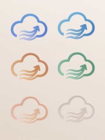 一系列6个不同造型和角度的云朵图标,保持3D立体风格,光滑圆润的表面,柔和的光影过渡,纯色背景,整体变换为淡蓝色调,云朵元素内容保持不变,每个云朵造型独特,角度各异,规整排布成集合,简约现代设计感,适合作为图标或装饰元素使用。