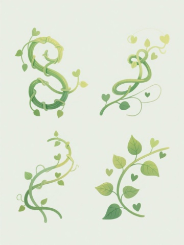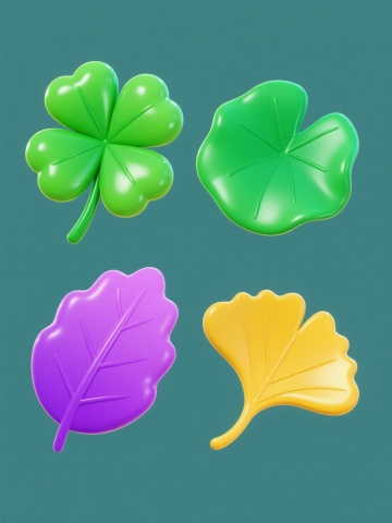 纯色背景上,保持清新自然的设计风格,将画面整体色彩调整为统一协调的色调,保留绿色叶子的核心元素内容,生成6个具有完全不同造型和飘落角度的叶子系列素材集合,所有素材规整排布。
