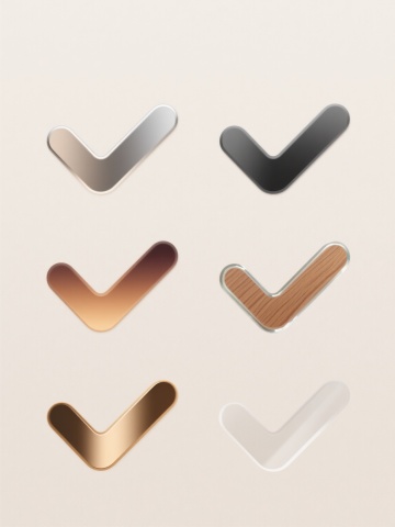 六个「对错」造型图标,分为上下两行对齐排列,每行三个图标,浅色背景。三个对勾图标分别采用不同配色、样式和材质:第一个为绿色圆形轮廓搭配绿色填充的扁平风格对勾,线条流畅圆润;第二个为蓝色渐变金属质感对勾,边缘有高光和阴影,呈现出立体光泽效果;第三个为橙色手绘风格对勾,线条带有细微的笔触纹理,色彩饱满温暖。三个叉号图标同样各具特色:第一个是红色圆形轮廓搭配红色填充的扁平风格叉号,造型简洁明了;第二个是紫色磨砂玻璃材质叉号,半透明质感,边缘柔和;第三个是黄色木质纹理叉号,表面有自然的木纹肌理,呈现出质朴的材质感。所有图标保持统一的圆形外框比例,整体视觉风格协调,色彩鲜明且对比清晰,信息传达直观高效,符合现代简约的设计美学。