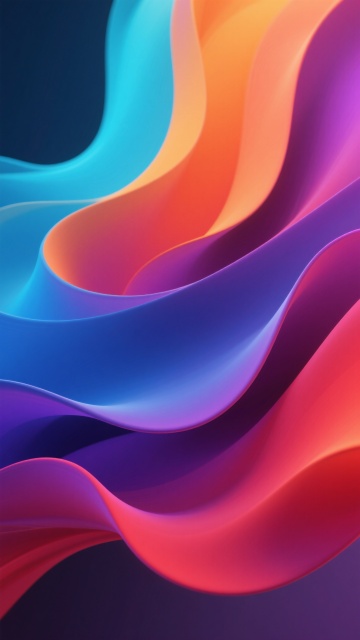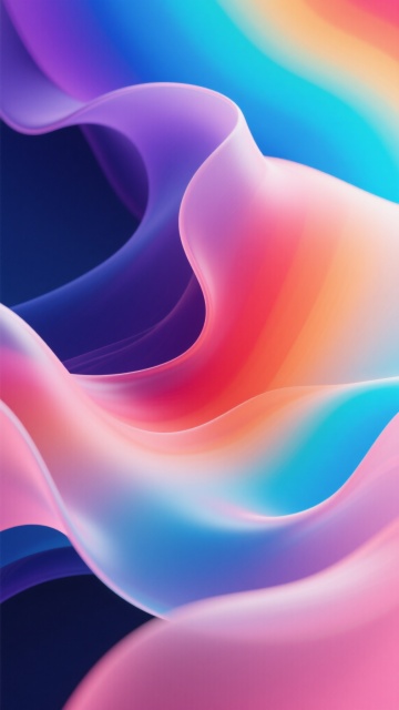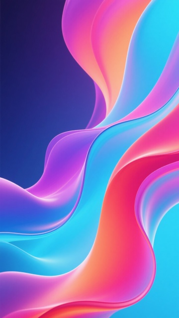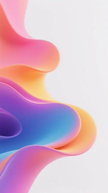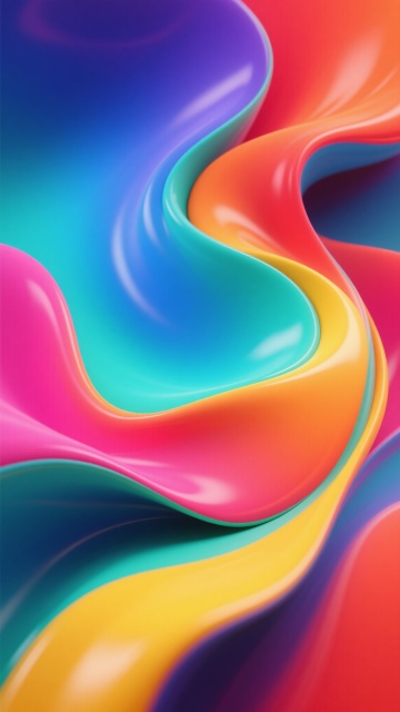 一张充满流动感的彩色背景设计,整体呈现出现代抽象的3D流体艺术风格。画面中,多种饱和明亮的色彩——深邃的靛蓝、纯净的天蓝、清新的薄荷绿、温暖的橙红、活力的粉红以及明亮的黄色——相互交融、渐变过渡,如同液态丝绸般自由流淌。色彩的分布自然且富有层次感,从左上角的深蓝紫色系,向右下方逐渐过渡到橙红色系,并在中央区域形成蓝绿与橙黄的柔和交汇。流体形态呈现出柔和的波浪状曲线和有机的漩涡结构,边缘平滑模糊,内部色彩过渡细腻自然,仿佛有轻微的动感和韵律。光影效果柔和,高光区域主要集中在色彩交汇的边缘和流体的隆起部分,产生微妙的光泽感,阴影则自然地融入色彩较深的褶皱之中,增强了整体的立体感和空间深度。整个背景充满了欢快、活力与梦幻的氛围,色彩搭配和谐且具有强烈的视觉冲击力,构图饱满均衡,没有任何文字或具象元素干扰,纯粹以色彩和形态传达出自由流动的美感。